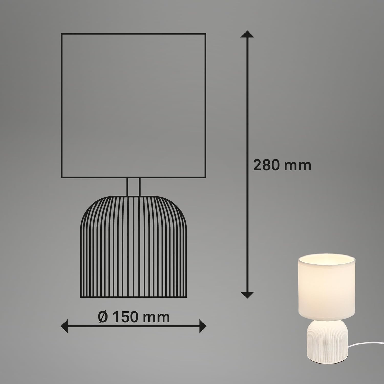 De lamp heeft een afmeting van 15x28 cm (DxH), perfect voor nachtkastjes of bijzettafels.