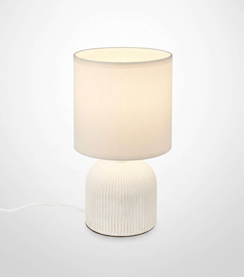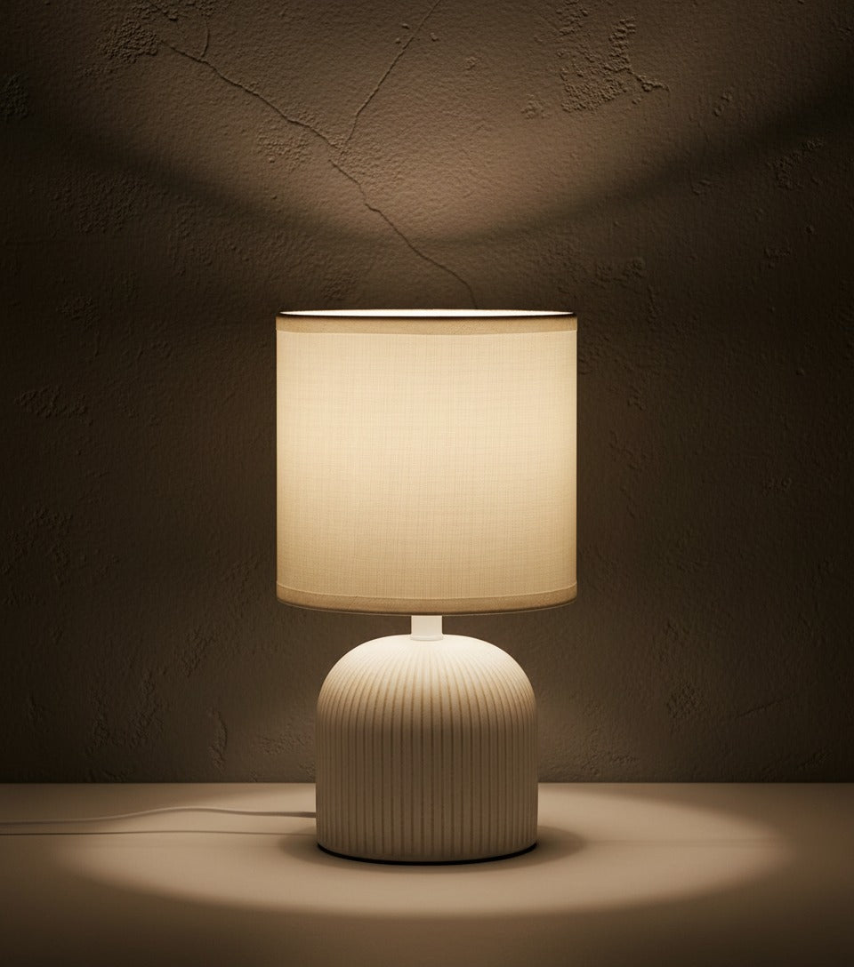 Deze tafellamp met stoffen kap verandert elke ruimte in een warme oase. Dankzij het zachte licht voelt je kamer meteen uitnodigend en gezellig aan. Perfect voor een ontspannende avond thuis.