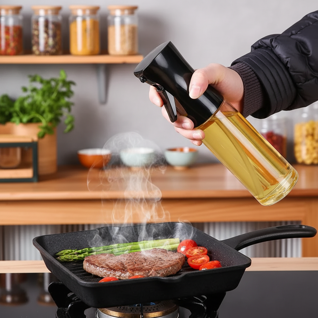 Met de Olie Sprayfles wordt koken en barbecueën eenvoudiger en schoner. Geen vettige handen meer of lastige vetvlekken op je kookgerei. Geniet van een moeiteloze en hygiënische kookervaring.